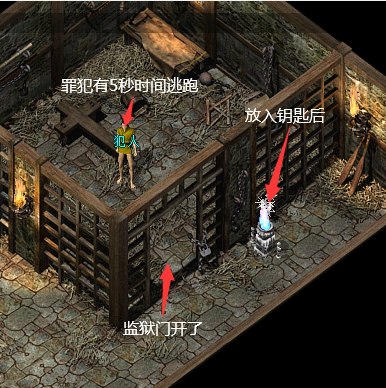 玩家可以通过中央传送,点击普通传送 第一个监狱救人 进入监狱 然后杀死 监狱卫士 掉落:监狱钥匙一把。