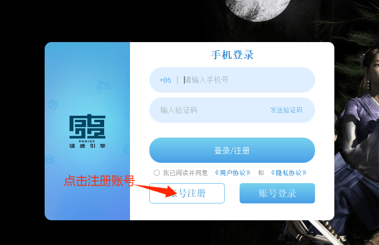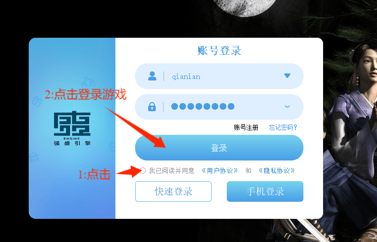 第三步:注册号账号后,填写账号 如图操登录游戏