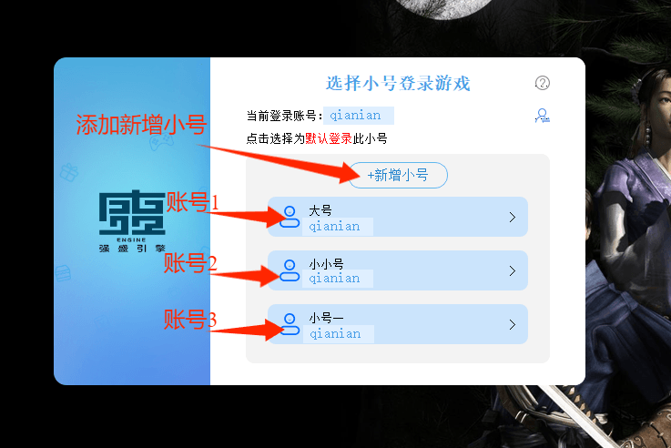 第五步:登录如需 多开 账号,登录游戏后有3秒时间,点击切换账号,选择大号或小号即可